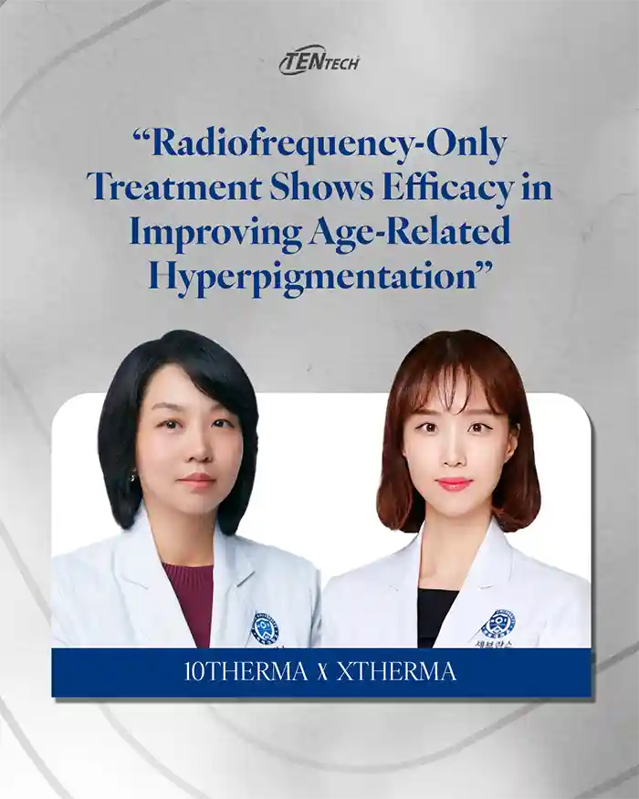 イ・ジュヒ教授とイ・ヨンイン教授率いる研究チームによると、この研究は、臨床患者データと前臨床組織分析を統合することにより、モノポーラ高周波(MRF)、具体的にはテンテック社の10THERMAデバイスが色素性皮膚病変に及ぼす影響を包括的に評価した世界初の研究報告の一つです。 研究者らは、加齢に伴う顔面色素沈着のためにクリニックを受診したアジア人女性患者を対象に、後ろ向き臨床解析を実施しました。その結果、以下のことが示されました。 皮膚のメラニンレベルと色素濃度の減少 肝斑の範囲と重症度を定量化する標準化された臨床尺度である肝斑面積・重症度指数(MASI)の統計的に有意な減少 シワ、毛穴、そして全体的な肌質の改善 注目すべきは、これらの改善が表皮の色素沈着の表面的な減少にとどまらなかったことです。この知見は、RF治療がメラニン生成の根本的メカニズムを調節すると同時に、皮膚の老化微小環境を改善することを示唆しており、大きな注目を集めています。 本研究では、臨床結果に加えて、紫外線B波(UVB)照射で刺激したヒト皮膚組織を用いた体外実験結果も示されました。これらの実験では、メラニン合成に関与する主要タンパク質の発現低下と、基底膜におけるIV型コラーゲンの発現回復が明らかになりました。 さらに、細胞老化マーカー(p16およびp21)の発現は減少する一方で、細胞の保護と回復に役割を果たす熱ショックタンパク質(HSP70およびHSP47)の発現は増加しました。これらの知見に基づき、研究者らは、RFによって誘発される深部熱刺激は、単なる表面加熱効果にとどまらず、老化に関連する細胞経路に影響を与え、メラニン生成シグナルを調節すると解釈しました。 従来、色素性疾患、特に肝斑や加齢性色素沈着の治療は、主に外用薬、またはレーザーや光を用いた「トーニング」療法に依存しており、これらは主にメラニンを直接標的とするか、表皮の色素沈着の分解に焦点を当てています。 対照的に、MRF単独療法は、メラニン生成シグナル伝達を同時に調節すると同時に、真皮細胞外マトリックス(ECM)の安定化と皮膚の老化環境の改善に寄与する、新たなアプローチです。このように、MRF単独療法は、色素性疾患治療分野における新たな治療パラダイムとして認識されつつあります。 研究チームは、本研究がRF療法の非侵襲性を維持しながら色素改善効果を実証したことで、RF療法の臨床応用可能性を大きく拡大するものであると強調しました。RF療法は従来、皮膚の引き締め、しわの軽減、コラーゲンの再生に用いられてきましたが、本研究は、色素性病変に対する標的治療選択肢としてのRF療法の将来性を裏付ける初期のエビデンスを提供しています。 研究者らは、「患者コホートの拡大、長期追跡観察、病変の種類に応じた反応パターンの追加解析など、さらなる研究が必要です。MRF療法の細胞および分子メカニズムをより正確に解明することは、適応症の絞り込みと個別化治療戦略の進展に不可欠です」と結論付けています。 |
