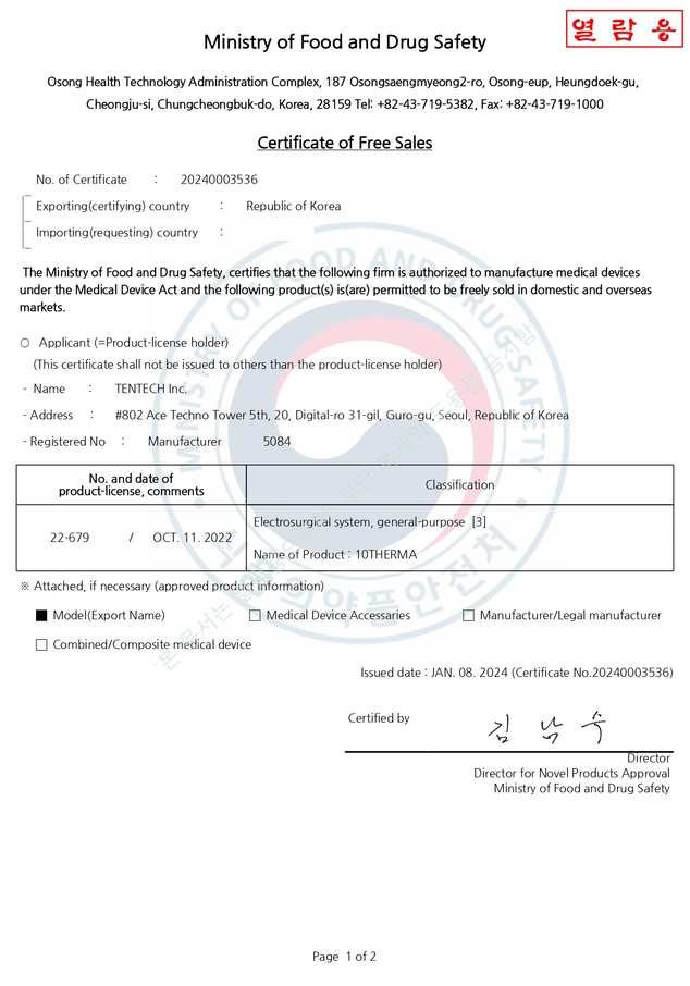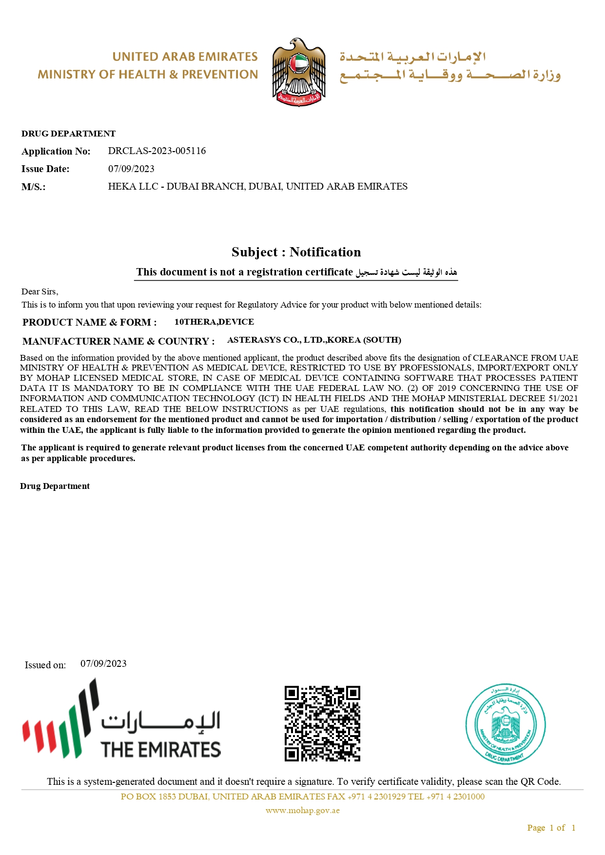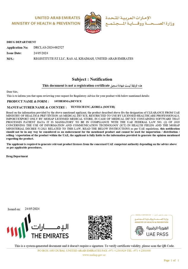 10THERMAがアラブ首長国連邦MOH認証を取得
