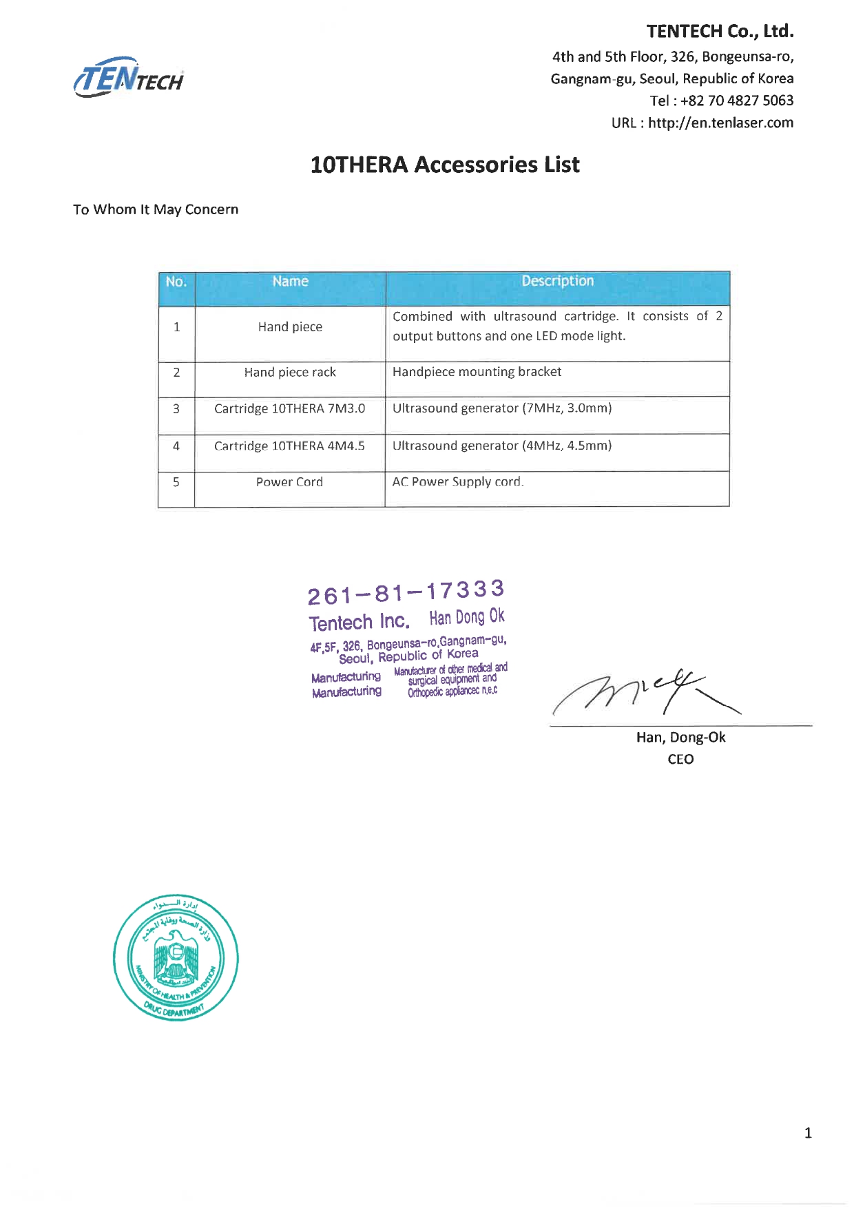 | Title | 10THERA MOHAP Certificate (Application No. DRCLAS-2013-005116) | ||