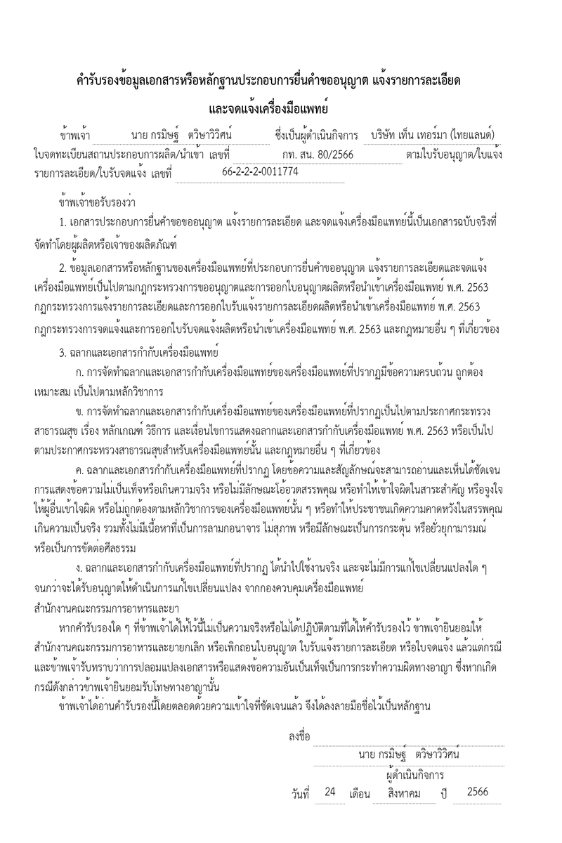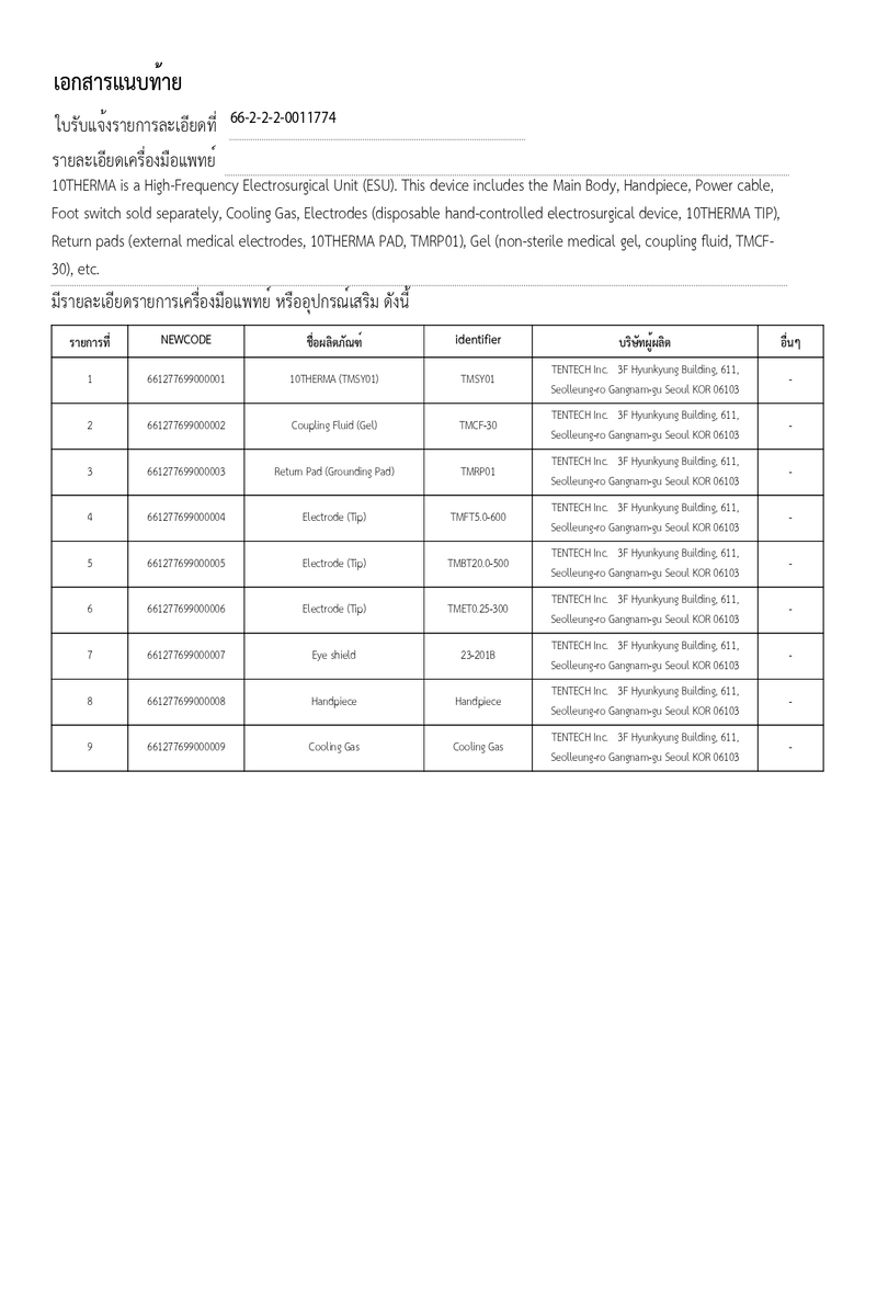 | Title | 10THERMA Thai FDA Certificate ( No. 66-2-2-2-0011774) | ||