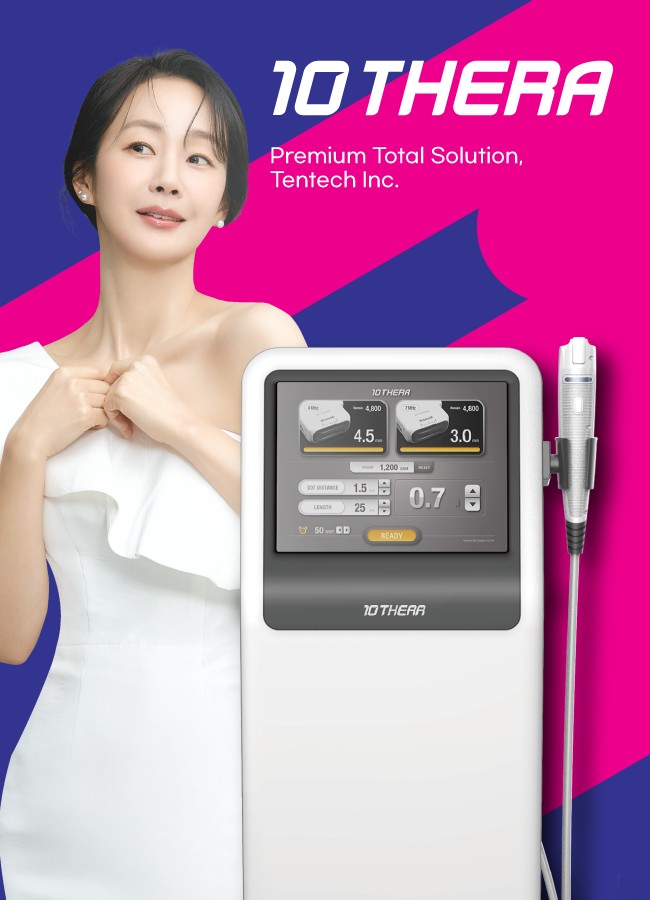 10THERA, utilizing the principle of High Intensity Focused Ultrasound (HIFU), delivers ultrasound heat energy in the range of 60 to 80 degrees to the targeted area. By delivering heat energy to the targeted area, typically the SMAS layer or the dermis, it can stimulate the production of collagen. 10THERA applicator is composed of 2 lines so it contributes to a shorter procedure time.Thus, the satisfaction with the treatment is very high. Now 10THERA holds TFDA certificate (Taiwan), TFDA certificate (Thailand), MoH certificate (UAE), and SFDA certificate (Saudi), MoH((MOH, Ministry of Health, Vietnam). Meanwhile, Tentech has received 510(k) clearance for 10THERMA from U.S. Food and Drug (U.S.FDA). The approval by the U.S. Food and Drug was based on the safety and effectiveness of 10THERMA. Because Tentech Inc. can sell 10THERMA now in the U.S., Tentech Inc. has participated in AAD 2024 San Diego from March 8th to 10th. Also, Tentech Inc. has appointed Clara as the ambassador for 10THERMA and is actively promoting through outdoor advertisements. |