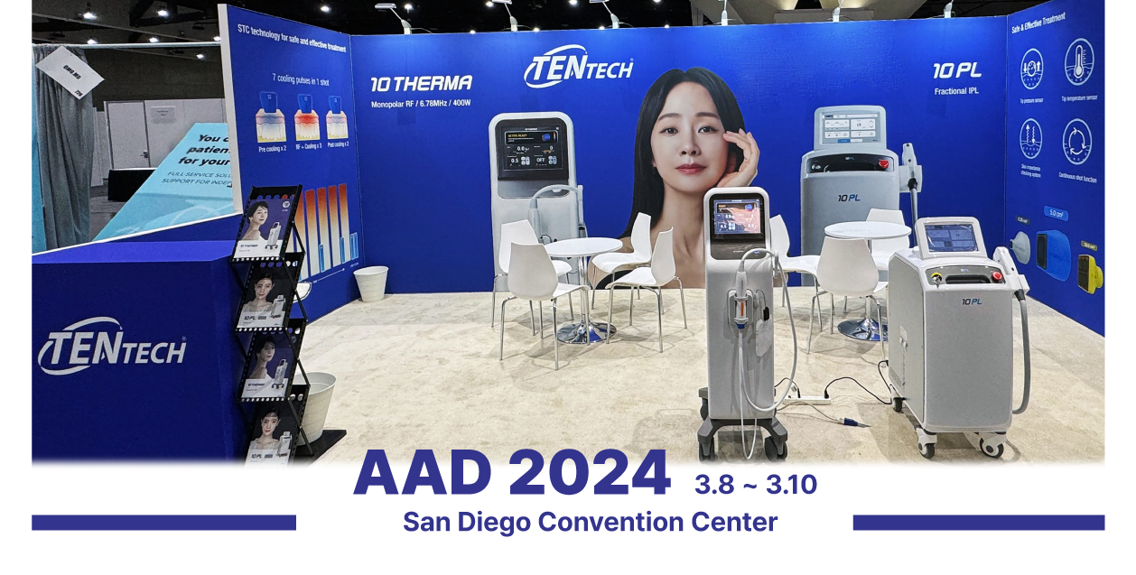 The 2024 AAD Annual Meeting is the largest annual meeting related to dermatology in the U.S. This annual meeting is organized to share the latest academic trends in dermatology and advancements in medical devices. Over 350 major companies in the dermatology field participated, and this event attracted approximately 18,000 attendees, primarily dermatologists. Tentech Inc. unveiled the monopolar radio-frequency (RF) device '10THERMA' and fractional IPL device '10PL'. Tentech Inc. received FDA 510(k) clearance for both products. Particularly, '10THERMA' (maximum output 400W/6.78MHz) gained significant attention as it made its official debut in the U.S. for the first time. '10THERMA' is a device that can deliver RF energy to the dermis, generating heat through the skin's electrical resistance. The monopolar RF treatment of '10THERMA' utilizes a mono pole electrode to effectively penetrate heat deep into the skin's layers. '10THERMA' is equipped with impedance matching technology that helps adjust precise targeted energy for individuals. Additionally, this treatment is non-invasive, resulting in no downtime and less pain. '10PL' is an IPL (intense pulsed light) device that significantly lowers the risk of burns by applying the fractional concept to existing IPL technology. Additionally, the tip size is 45mm X 18mm, allowing for quick treatment of large areas. In 2021, Tentech has secured U.S. FDA approval for 10PL. A representative for Tentech Inc. stated, "We showcased '10THERMA', an RF device that has received FDA 510(k) clearance, in the U.S." He added, "Tentech Inc. successfully concluded its exhibition with a lot of interest from dermatologists and distributors from American markets, including the U.S., Canada, Mexico, Chile, and Brazil." |