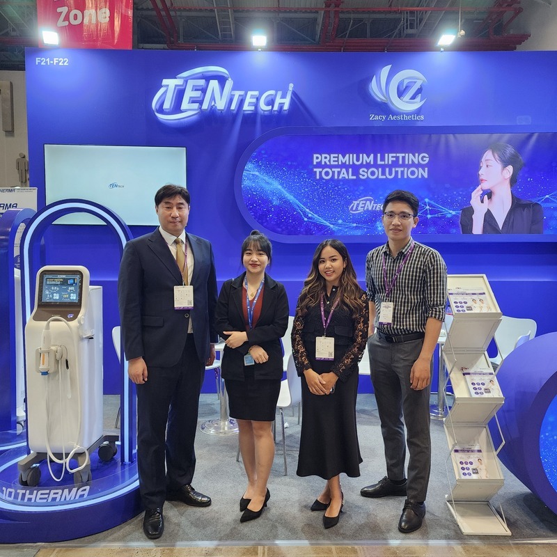 ‘K-Med Expo 2024 Vietnam’ is a medical device exhibition aimed at introducing innovative Korean medical devices to Vietnam. Meanwhile, the Vietnamese government is committed to modernizing the national medical system. Over 113 exhibitors participated, and K-MED EXPO attracted over 6,000 visitors, including Southeast Asian dermatologists and industry buyers. The 10THERMA is a 6.78MHz monopolar RF treatment device with a maximum output of 400W. It delivers RF energy to the dermis, generating heat through the skin's electrical resistance. 5㎠ face tip of 10THERMA is wider than those of other RF devices, allowing for 25% more energy coverage per shot. 10THERMA features an S.T.C. (Smart Temperature Cooling) system, which emits a total of seven cooling pulses during a shot. Additionally, 10THERMA is equipped with impedance matching technology that helps adjust precise targeted energy for individuals. 10TRIPLE, the upgraded version of the Double Line HIFU treatment device ‘10THERA,’ is a Triple Line HIFU (High-Intensity Focused Ultrasound) treatment device equipped with four arms. This innovative device integrates Triple Line HIFU, Triple Dot HIFU, and Single Dot HIFU technologies. Unlike traditional HIFU devices that offer only one-line treatment, 10TRIPLE provides a three-line treatment approach, allowing for a significant reduction (about three times) in procedure time. This advancement enables practitioners to deliver efficient and effective treatments, enhancing patient satisfaction and optimizing workflow. Additionally, at K-MED EXPO, Dr. Lee Sang Su, a guest speaker for 10THERMA, presented a lecture titled ‘Powerful & Effective but Less Painful and Safe Skin Rejuvenation and Lifting Effect with Advanced 6.78MHz Monopolar RF. A sales representative from Tentech Inc. stated, "At K-Med Expo 2024, we introduced 10THERMA and 10TRIPLE in Vietnam, demonstrating the technology and competitiveness of K-medical devices to the world." He added, "Tentech Inc. is actively participating in exhibitions held in Southeast Asian countries to gain more market share in the region." |
