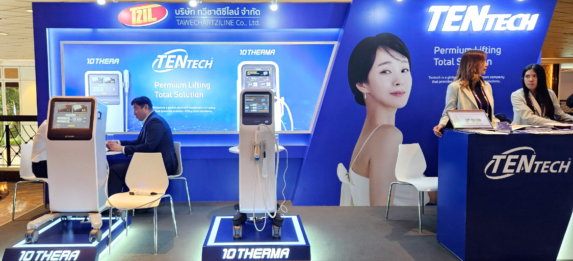 'ASLS Bangkok 2024', organized by the Korean Academy of Aesthetic Surgery and Laser Medicine (ASLS), attracted Asian medical professionals. At the event, Tentech introduced its main products to the attendees: the monopolar RF device '10THERMA' and HIFU treatment device ‘10THERA’. Especially, Tentech invited 10THERMA key doctors in ASLS and they have 2 presentations about 10THERMA to help understand audiences. At the first, Dr. Sangsu Lee, Mirabel Clinic, delivered the first 10THERMA presentation titled 'Safe, Effective & Less Painful Skin Rejuvenation and Lifting with Advanced 6.78MHz Monopolar RF', emphasizing the advancements in RF medical technology and the features of 10THERMA’s S.T.C system and explaining the history of Monopolar RF device for skin tightening. Dr. Changhwan Cho (DonganCenter Clinic) delivered the next lecture titled "5㎠ Generation 6.78MHz: Benefits of Impedance Matched Monopolar RF with 6 Pulses and 7 Cooling." Through his presentation of clinical case studies, he provided profound insights into the 10THERMA system, further deepening the audience's comprehension. 10THERMA is a 6.78MHz monopolar RF treatment device with a maximum output of 400W. It delivers RF energy to the dermis, generating heat through the skin's electrical resistance. 5㎠ face tip of 10THERMA is wider than those of other RF devices, allowing for 25% more energy coverage per shot. 10THERMA features an S.T.C. (Smart Temperature Cooling) system, which emits a total of seven cooling pulses during a shot. Additionally, 10THERMA is equipped with impedance matching technology that helps adjust precise targeted energy for individuals. 10THERA, using the principle of HIFU, is a HIFU treatment device that delivers ultrasound heat energy to the targeted area. By delivering high heat to the targeted area, typically the SMAS layer or the dermis, it can stimulate the production of collagen. The 10THERA applicator is composed of 2 lines, contributing to a shorter procedure time. A representative for Tentech stated, “At ASLS Bangkok 2024, we showcased 10THERMA and 10THERA through both exhibitions and lectures, generating substantial interest and demo inquiries from Thai medical professionals." And he added "We anticipate that our active exhibition efforts in Southeast Asia will lead to increased product sales and revenue growth in the region.” |