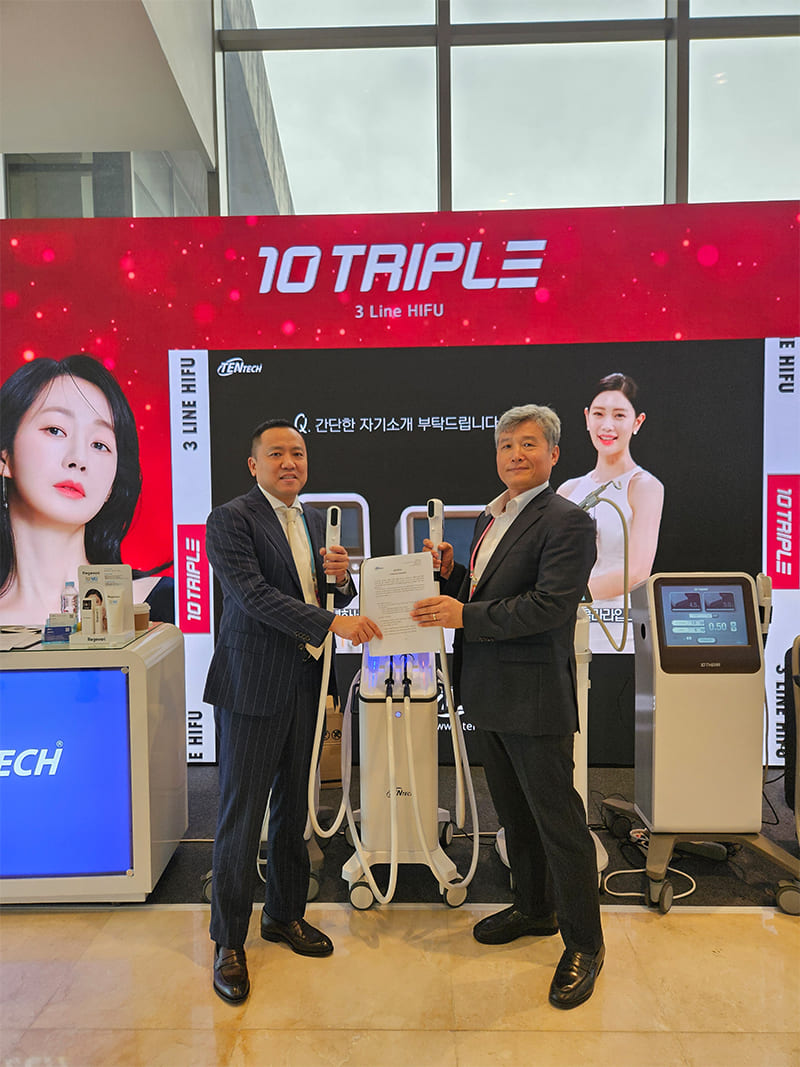 The contract is valued at approximately 15 billion KRW (about $10 million USD) over two years, and it is anticipated that this will be easily achievable given Grand Medical's sales strength and the excellent competitiveness of 10TRIPLE. The company has shown confidence in dominating the Taiwanese HIFU market by paying a deposit ahead of receiving regulatory approval for exclusive rights. A Tentech representative stated that 10TRIPLE, which features four handpieces—three lines, three dots and one dot—will significantly reduce treatment time while enhancing patient satisfaction. The company aims to sell over 1,000 units domestically and expects to sell more than 3,000 units starting in 2026 once regulatory approvals in major overseas markets are completed. Additionally, the monopolar radiofrequency device, 10THERMA, has surpassed 800 units sold, and it is anticipated that over 1,000 units will be sold in markets including Korea, Taiwan, Southeast Asia, the United States, India, and Brazil by 2025. Tentech specializes in manufacturing lifting medical devices and plans to prominently showcase Korean technology in the global HIFU and monopolar RF markets. |